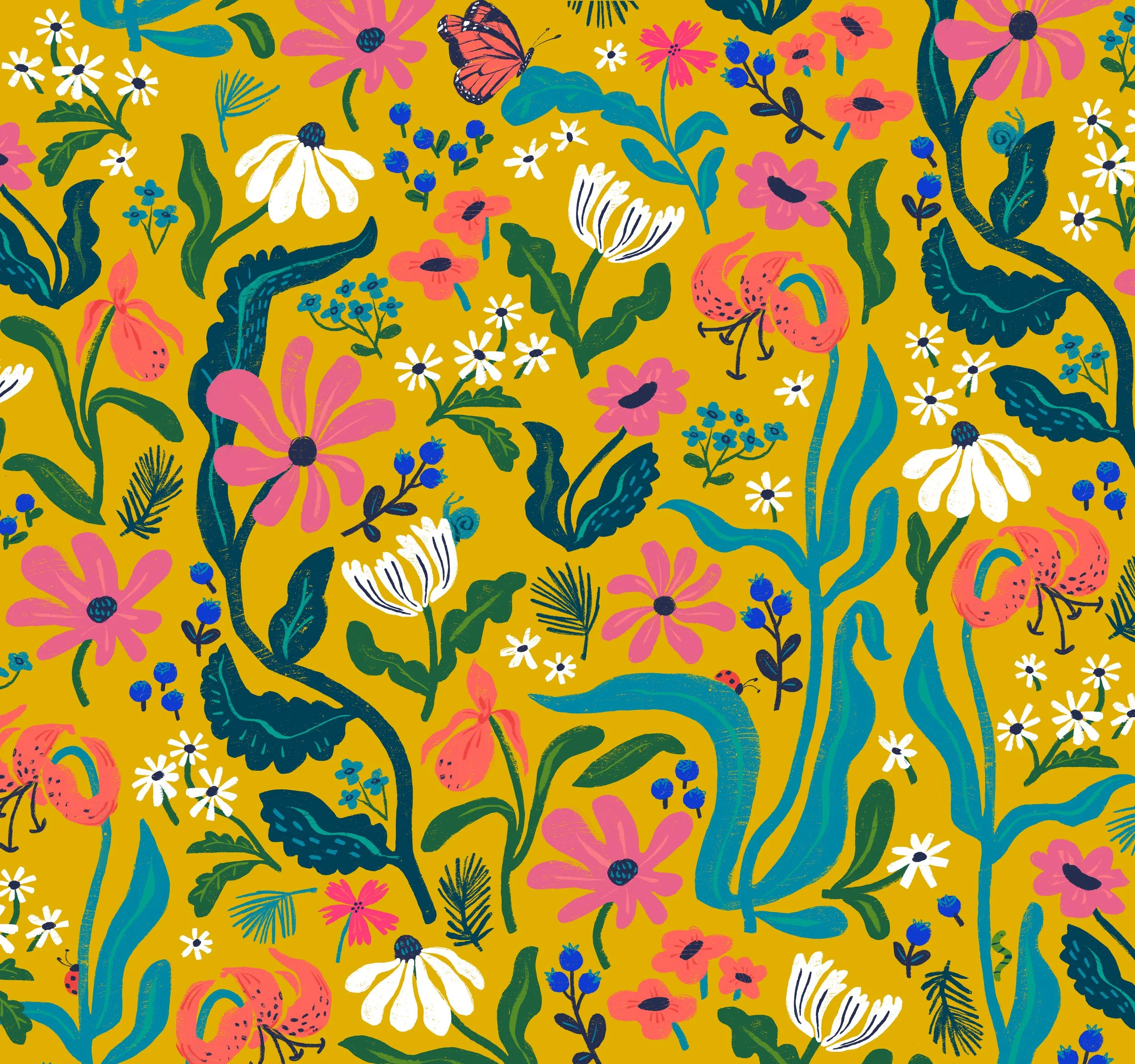 I used flora and fauna from the Georgian Bay area with a dash of make believe, cause isn’t life better with alittle magic. The Trillium, Ontarios flower makes an appearance aswell. You can’t have flowers without the rain, and you can’t be a human on planet earth and not cry some tears.